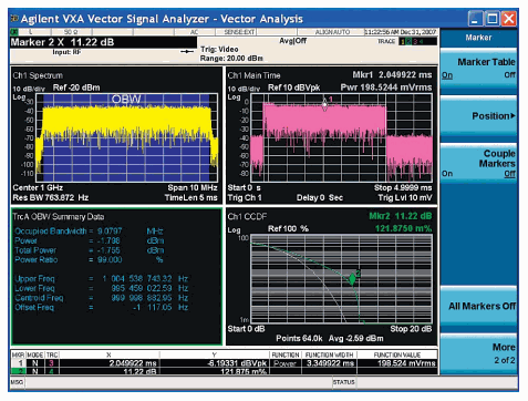 The VXA vector signal analyzer display offers flexible marker and display capabilities: