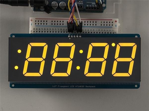 Adafruit 1269 Optoelectronics 7 Segment Display Yel. w/I2C Backpack | EMINKH.COM