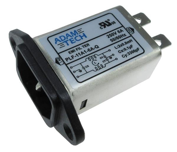 Adam Tech PLF-11A1-6A-Q Power Line Filters EMI/RF Line Filter, 115/250VAC 6A, inlet socket w/ flange mounting | EMINKH.COM