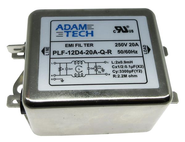 Adam Tech PLF-12D4-20A-Q-R Power Line Filters EMI/RF Line Filter, 115/250VAC 20A, medium outline, chassis mount | EMINKH.COM