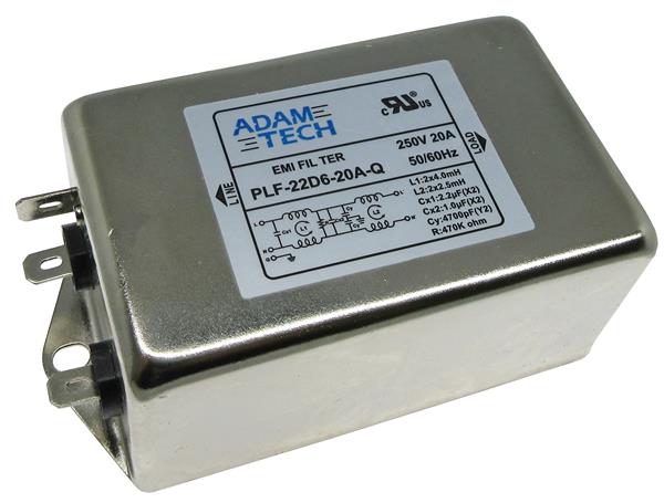 Adam Tech PLF-22D6-20A-Q Power Line Filters EMI/RF Line Filter, 115/250VAC 20A, medium outline, chassis mount | EMINKH.COM