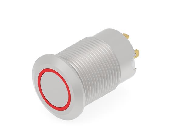 Alcoswitch - TE Connectivity 2488219-8 Anti-Vandal Stainless, Flush Button, Red LED ring, Solder terminal, LED 24VDC | EMINKH.COM
