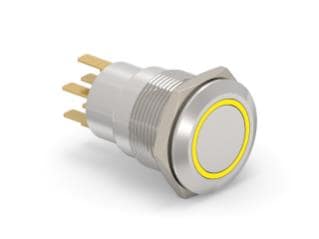 Alcoswitch - TE Connectivity 7-2213764-0 Pushbutton Switches AV19 DPL 0.4VA FIX RING LED YELLOW 12V | EMINKH.COM