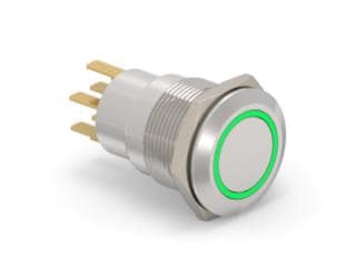 Alcoswitch - TE Connectivity 7-2213764-4 Pushbutton Switches AV19 DPL 0.4VA FIX RING LED GREEN 12V | EMINKH.COM