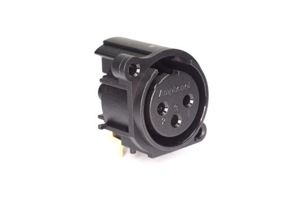 Amphenol Audio AC3FAHL1-AU-PRE Connectors 3 Pole XLR Female Chassis Mount A Type Gold Contacts Black Finish Horizontal PCB | EMINKH.COM