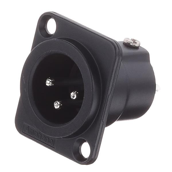 Amphenol Audio AC3MDZB BULK Connectors 3 Pole XLR Male Chassis Mount D Type Stamped Contacts Black Finish | EMINKH.COM