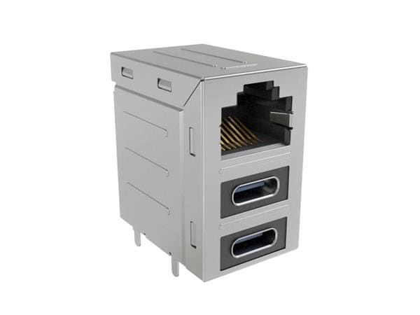 Amphenol Commercial Products RJE36188340CH RJ45 Over Dual USB Type C Stacked RJ45 over 2 Nos USB Type C with 50 micro inch Contact Gold Plating