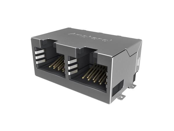 Amphenol Commercial Products RJE3B2886102N Modular Jack Modular Jack - 2P 8P8C, RA, CAT6, SMT, Single Port, Shield Without Top and Side EMI Tabs, With Housing Pegs, No LEDs
