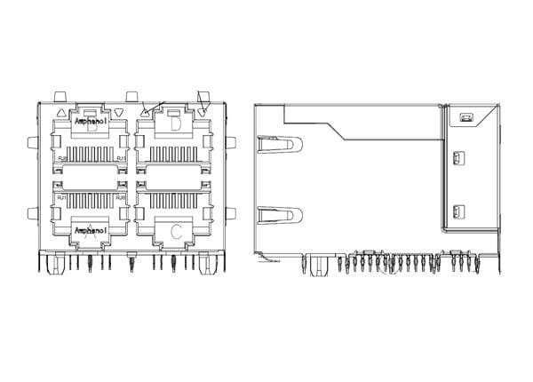Amphenol Commercial Products RJMG322DN11E3ER Magnetic Jack 2X2 10G, press fit | EMINKH.COM