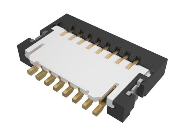 Amphenol FCI 59453-082110ECHLF Board Mount 0.50mm Flex Connectors, FPC/FFC Side Entry ZIF Connector, Surface Mount, 8 Positions, Top Contact, 0.50mm (0.020in) Pitch.