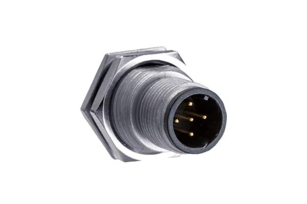 Amphenol LTW HDM12A-05PMMP-SF8001 Plugs Heavy Duty M12 Circular Metric Connector, A Code, High Temperature, Metal, 4A, 05 pins, Male Connector, Male Contact, Hexagonal, PG9, Screw Thread, Receptacle, PCB 180 , Receptacle, Front Fasten, IP68 / IP69K
