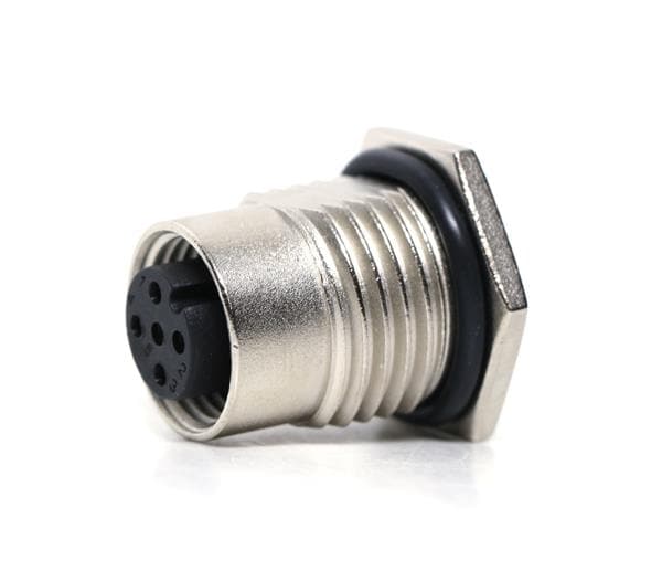 Amphenol LTW M12A-03PFFS-SF8002 Circular Metric Connectors M12 Circular Metric Connector, A Code, Metal, 4A, 03 pins, Female Connector, Female Contact, Hexagonal, M16*1.5, Screw Thread, Solder, Receptacle, Front Fastened, Panel Thickness 4.5, IP68 / IP69K