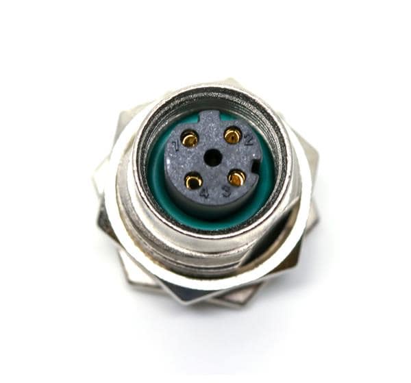 Amphenol LTW M12D-04PFFS-SF8002 Sensor Cables / Actuator Cables M12 Circular Metric Connector, D Code, Metal, 4A, 04 pins, Female Connector, Female Contact, Hexagonal, M16*1.5, Screw Thread, Solder, Receptacle, Front Fastened, Panel Thickness 4.5, IP68 / IP69K
