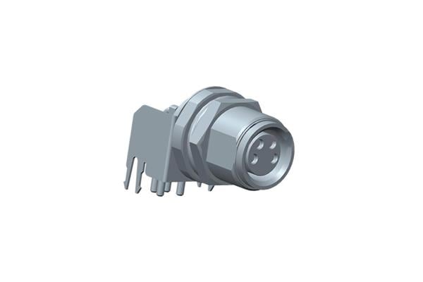 Amphenol LTW M8S-06PFFR-SF8001 Circular Metric Connectors M Series Sensor Connector, M8, A Code, Metal, 3A, 06 pins, Female Connector, Female Contact, Hexagonal, M10*0.75, Screw Thread, PCB 90 , Receptacle, Front Fastened, IP68