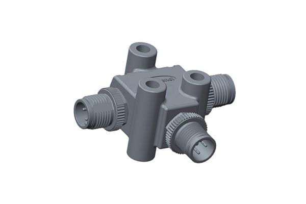 Amphenol LTW TA-A12M-A12M-A12M-01 T-Adapter Circular Metric Connector, T Adaptor, Metal, A Coding, 1.5A, 12 pins, (End 1) Male Male, (End 2) Male Male, (End 3) Male Male, Screw Thread, IP68 Mated