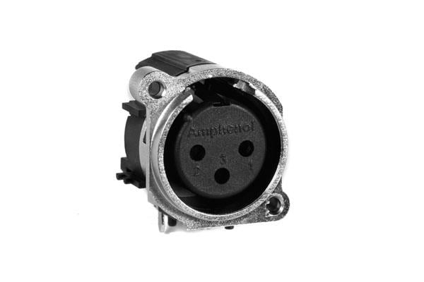 Amphenol SINE Systems AC3FBHL2-AU-PRE XLR Connectors 3 Pole XLR Female Chassis Mount BType Nickel Finish Gold Plate Contact Horiz PCB