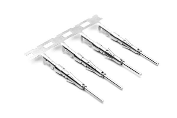 Amphenol SINE Systems SP24W2T Contacts Pin Contact, Stamped, Tin plating over nickel, Wire Range .14-.25mm , 26-24 AWG, with 3 tangs. 3,000 pcs. Reel