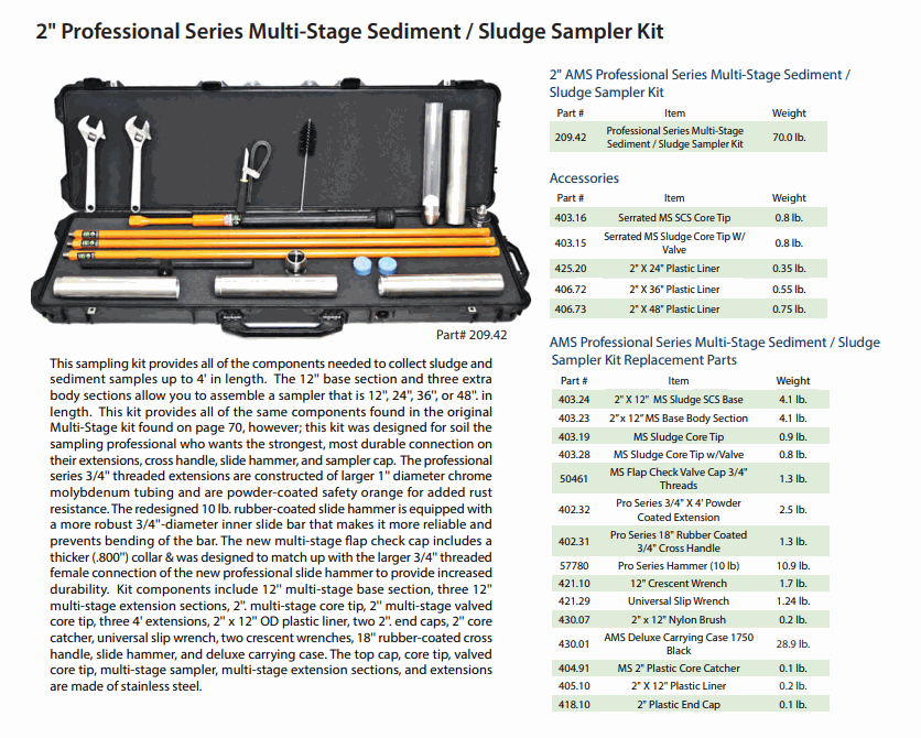 AMS 209.42 Professional Series Multi-Stage Sediment / Sludge Sampler Kit | EMINKH.COM