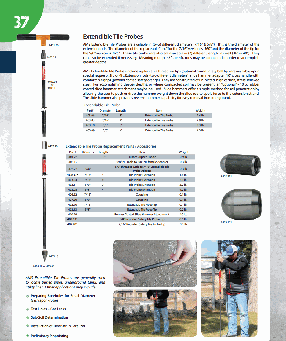 AMS 403.06 7/16" X 3' Extendible Tile Probe Complete | EMINKH.COM