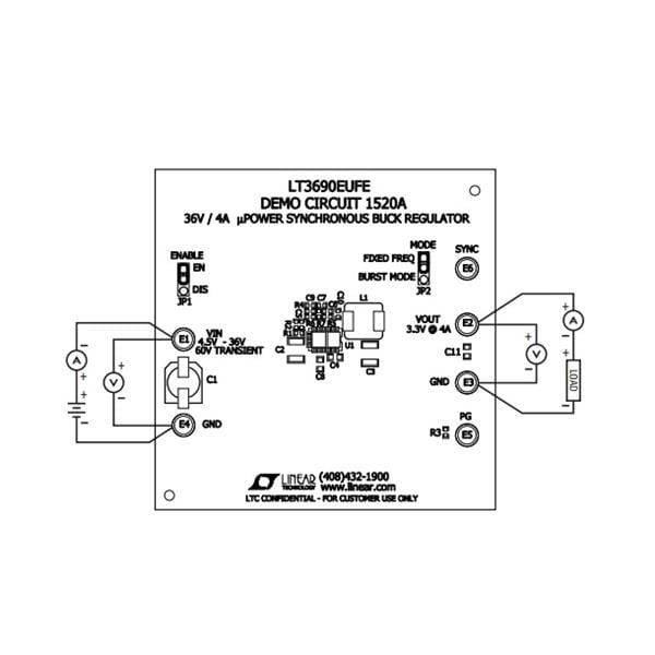 Analog Devices DC1520A Voltage Regulator - Switching Regulator LT3690EUFE Demo Board ? 4.5V = VIN = 36V | EMINKH.COM