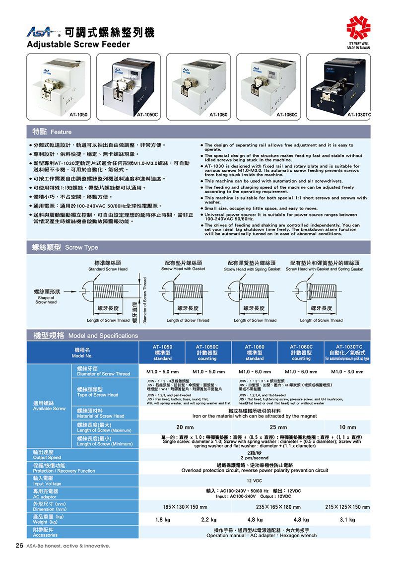 ASA AT-1060C Adjustable Screw Feeder (M1.0 - 6.0 mm; 25 mm; counting) | EMINKH.COM