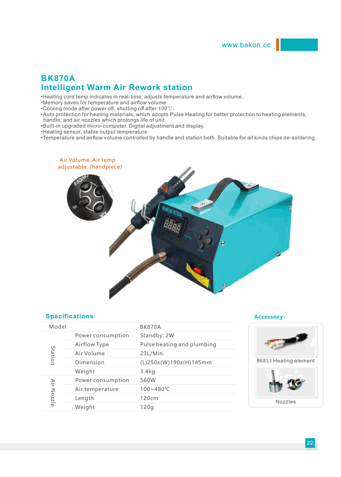 Bakon BK870A Intelligent Warm Air Rework Station (560W) | EMINKH.COM