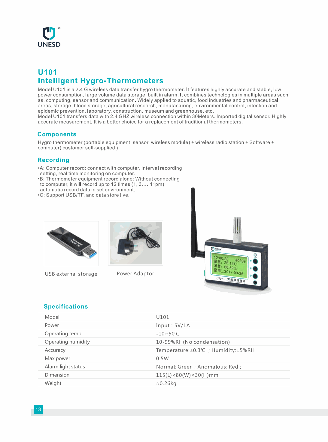 Bakon U101 Smart Hygro-Thermometer (-10~50°C; 10-99%RH) | EMINKH.COM