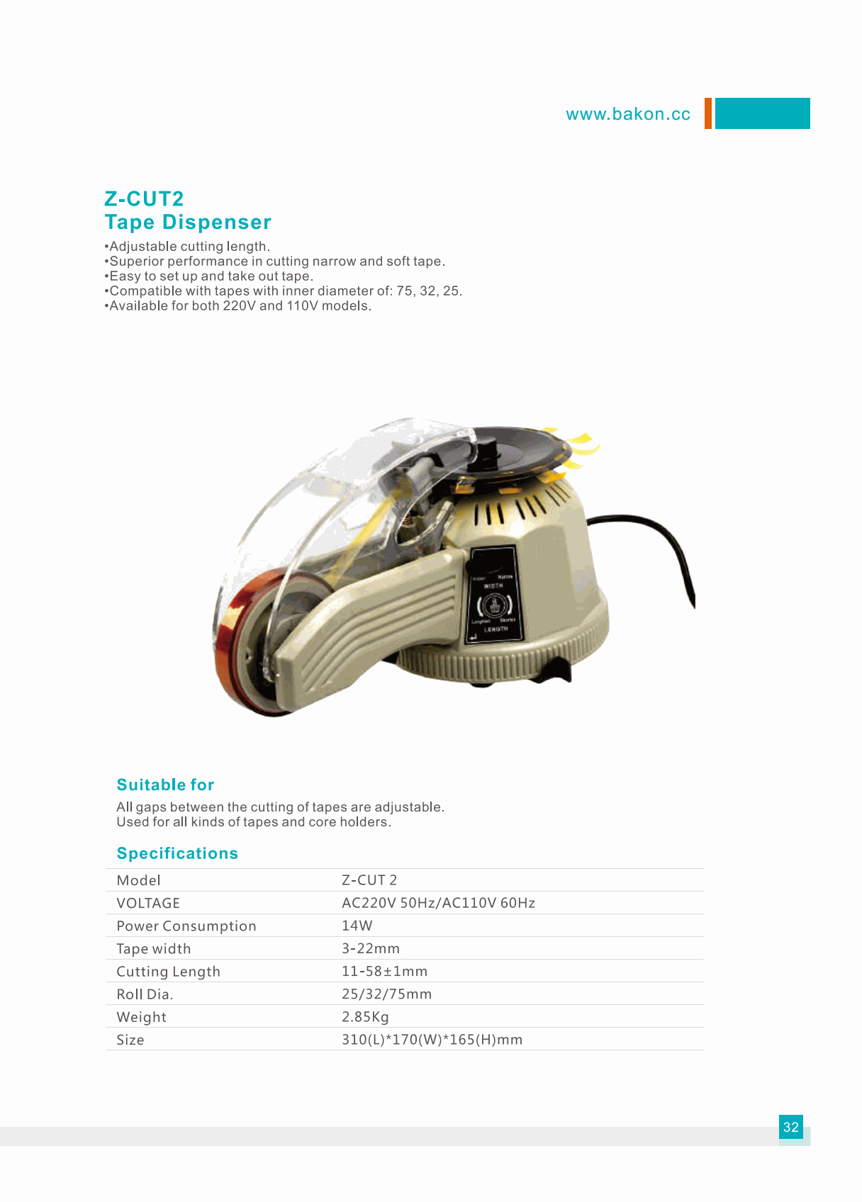 Bakon Z-CUT 2 Tape Dispenser (11-58±1mm) | EMINKH.COM