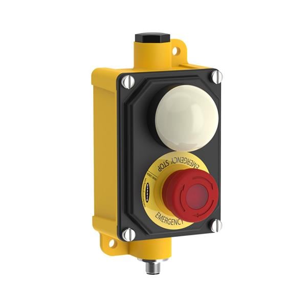 Banner Engineering SSA-EB1PL2-12EB1Q12K50LT Emergency Stop Switches Illuminated E-Stop Button (Push On): 2 NC/1 NO; E-Stop Legend; 3 Color K50 Touch, BENC Enclosure; 12-pin M12 Integral QD Left Cable