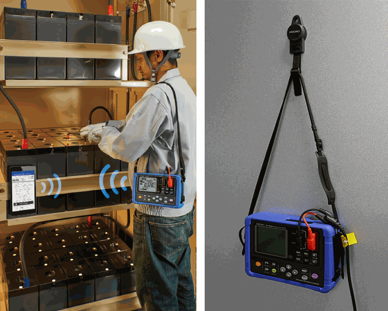 If you’re measuring a number of batteries in a large area, use the included shoulder strap to carry the instrument with you while making measurements. Or if there are numerous batteries at a single location, use the Magnetic Strap Z5020 (sold separately) to hang the instrument on the wall while you work.