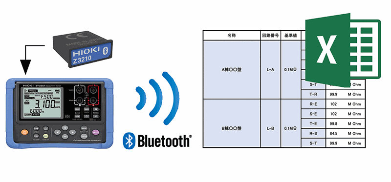 Excel® Direct Input function allows you to input measurement values directly and automatically into an Excel file once the measurement Auto-hold function is activated. You can easily input the data into an existing Excel form. (When using the Wireless Adapter Z3210)