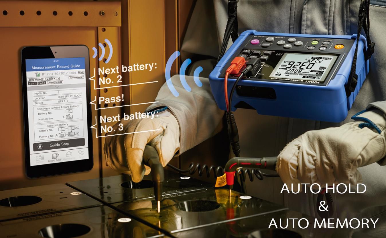 The BT3554-50 auto-hold function automatically holds measured values once they stabilize. The instrument’s auto-memory function, which automatically stores measured values resulting from the auto-hold function in its internal memory, further streamlines work tasks.