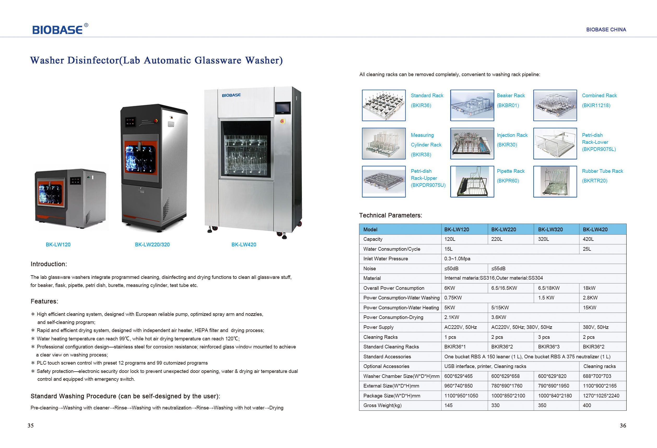 - Professional configuration design—stainless steel for corrosion resistance;reinforced glass window mounted to achieve a clear view on washing process .