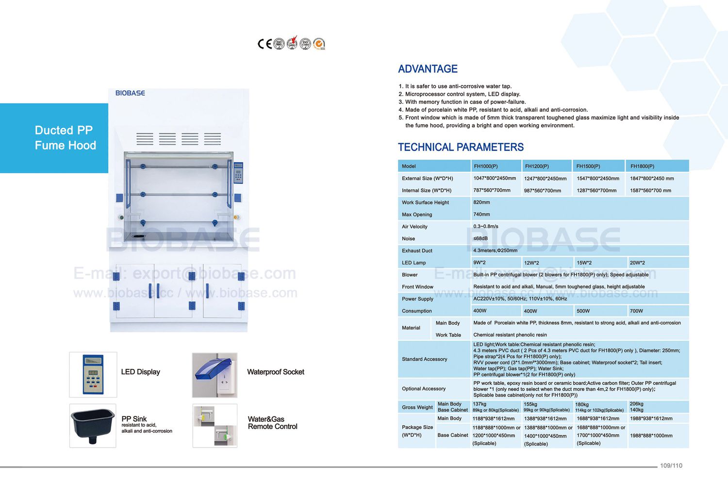 Blower: Built-in PP centrifugal blower(2 blowers for FH1800(P) only), Speed adjustable