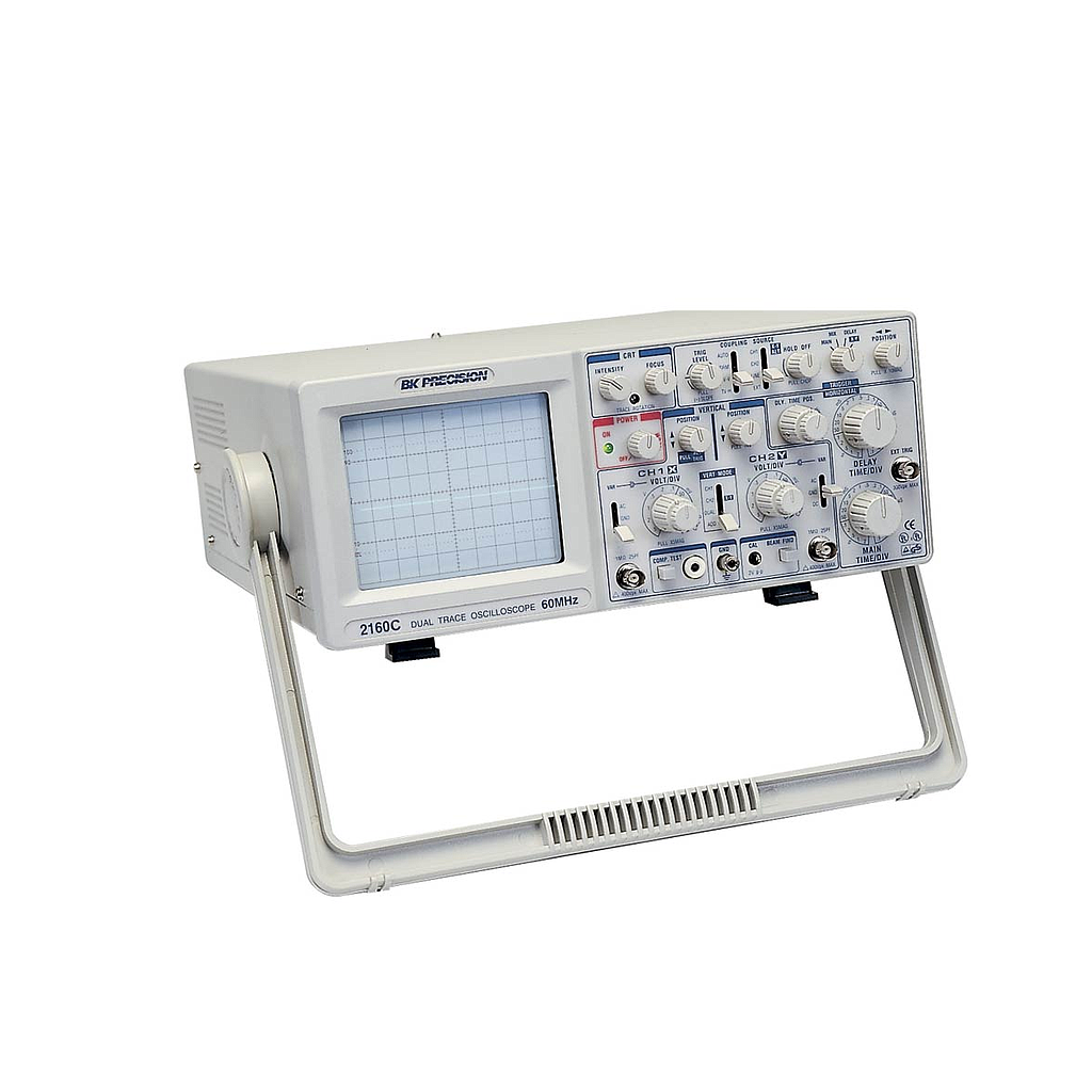 B&K Precision's model 2160C is an oscilloscope with many features at a low cost. The model 2160AC includes a built-in component tester, which is an excellent tool for in-circuit troubleshooting. This oscilloscope is built by and backed by B&K Precision, a company that has been selling reliable, durable, value-priced test instruments for over 60 years.