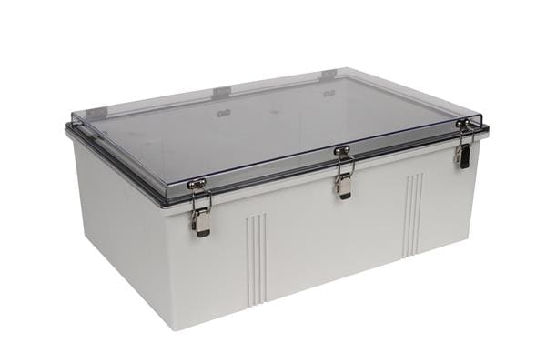 Bud Industries PTH-22440-C Electrical Enclosures PC+10% Fiberglass Box, Self-Locking Latch and Clear Cover (23.7 X 15.8 X 9.2 In) | EMINKH.COM