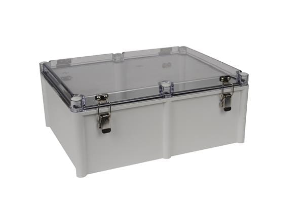 Bud Industries PTH-22460-C Electrical Enclosures PC+10% Fiberglass Box, Self-Locking Latch and Clear Cover (16.9 X 13 X 7.1 In) | EMINKH.COM