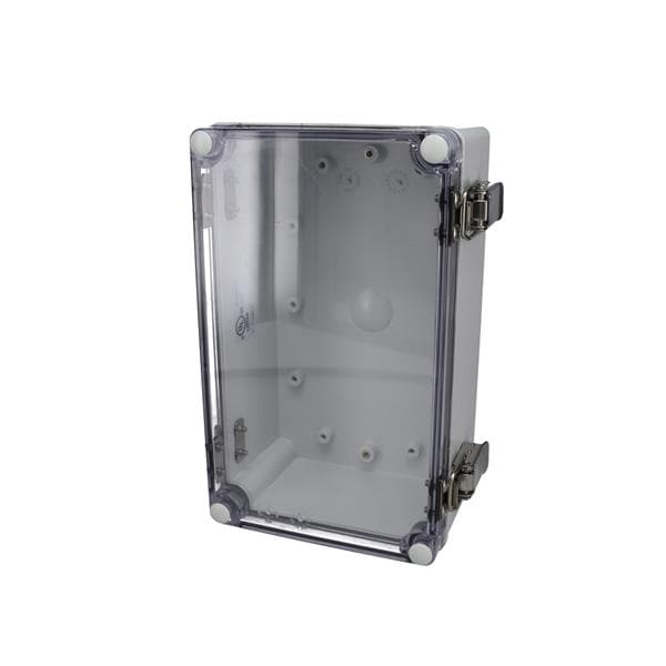 Bud Industries PTH-22492-C Electrical Enclosures PC+10% Fiberglass Box, Self-Locking Latch and Clear Cover (9.1 X 5.5 X 3.7 In) | EMINKH.COM