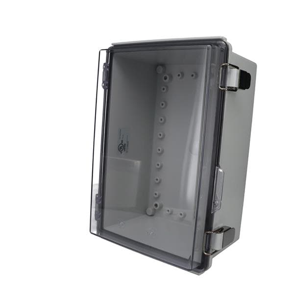Bud Industries PTQ-11057-C Hinged Cover PC+10% Fiberglass Box, Stainless Steel Latch and Clear Cover (11 X 7.5 X 5.5 In) | EMINKH.COM