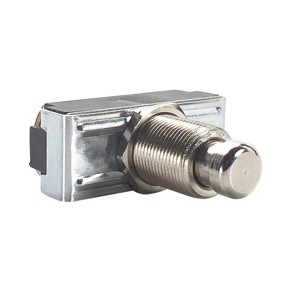 Carling Technologies 172 Standard Switches 1-pole, OFF - (ON), 10A/15A 250VAC/125VAC not HP rated, Non-Illuminated Nickel Plated Plunger Pushbutton Switch with Screw Terminals