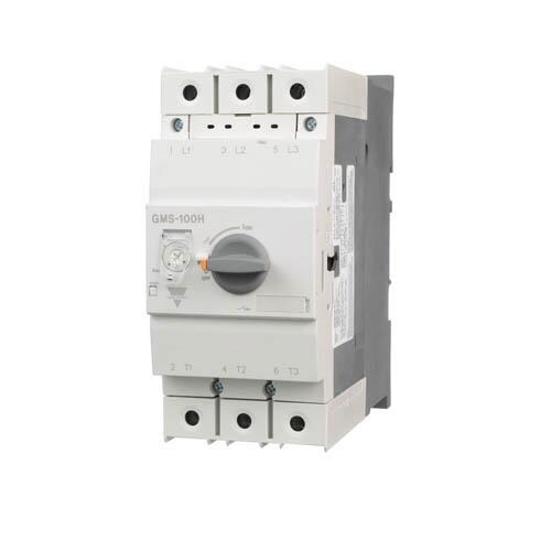 Carlo Gavazzi GMS-100S 100A Motor Drives Standard-break Manual Motor Starter. 100Amps frame size, 600VAC, class 10 overload with range: 80-100A . Check datasheet for interruption rating.