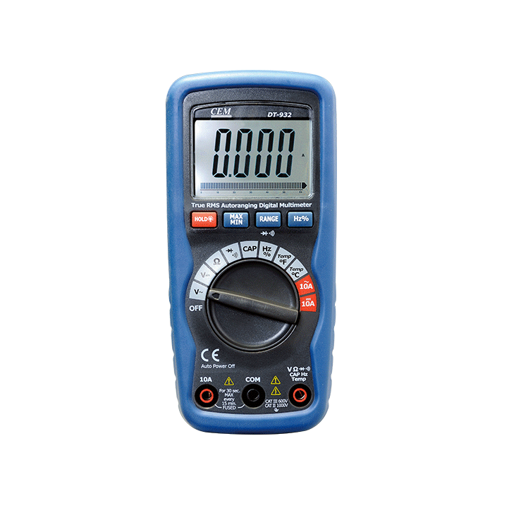 Test leads, 9V battery, type K temperature probe (931/931N/932/932N) and gift box with carrying case.