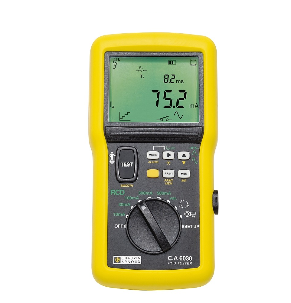 + by RCD test without tripping and without tripping using 1 auxiliary rod: from 0.1 to 4000Ω