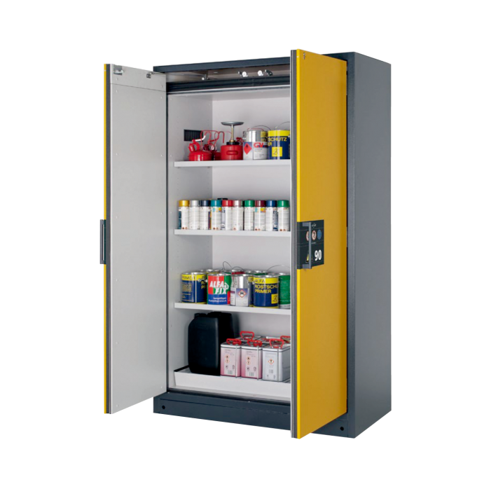 The expandable interior finish between the door and the frame swells in response to heat in the event of a fire, sealing the gap between the door and the frame and blocking the entry of heat into the cabinet. It keeps the temperature inside constant.