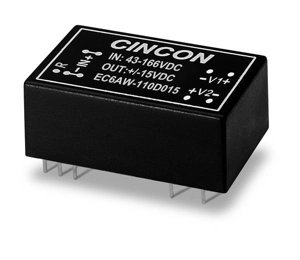 Cincon EC6AW-110D05N Isolated DC-DC Converter, 10 Watt, 4:1 Input Range, 43-160VDC Input, +/-5VDC Output, +/-1000mA, 85% Efficiency, Negative Logic