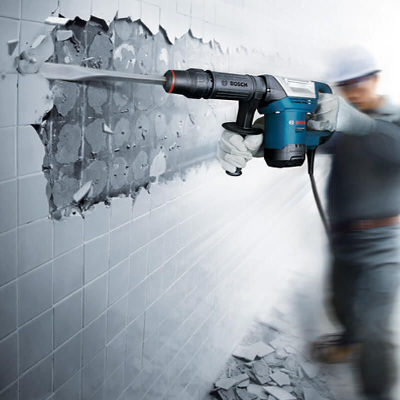 Máy đục bê tông phù hợp với công việc đục phá, đặc biệt phù hợp với thợ chuyên nghiệp. Với lực đập mạnh và vận tốc cao, máy có thể xuyên thủng các bức tường gạch hoặc bê tông cứng một cách nhanh chóng, mà không phụ thuộc nhiều vào sức lao động của con người.