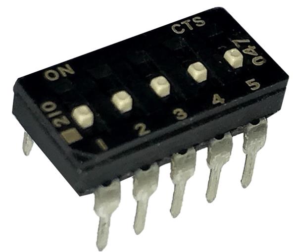 CTS Electronic Components 210-5MSFD DIP Switches THROUGH HOLE, GOLD FLASH DIP SWITCH, 5-POLE, MEDIUM ACTUATOR, BOTTOM SEAL, OFF, STRAIGHT TERMINAL FORM, TUBE PACK