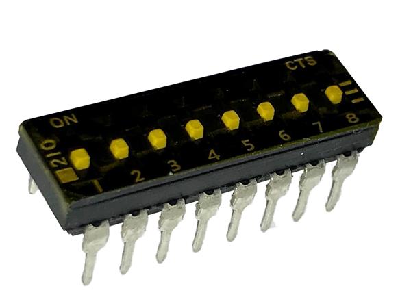 CTS Electronic Components 210-8MSTFD DIP Switches THROUGH HOLE, GOLD FLASH DIP SWITCH, 8-POLE, MEDIUM ACTUATOR, BOTTOM SEAL, TAPE SEAL, OFF, STRAIGHT TERMINAL FORM, TUBE PACK