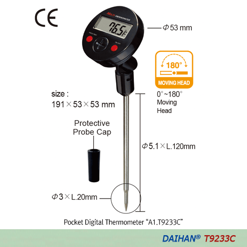 DaiHan A1.T9233C Thermometer Pocket, Movinghead -50~+300℃ | EMINKH.COM