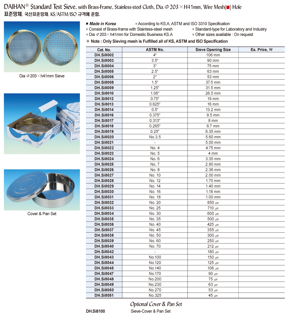 DaiHan DH.Si8004 Standard Test Sieve (75mm) | EMINKH.COM